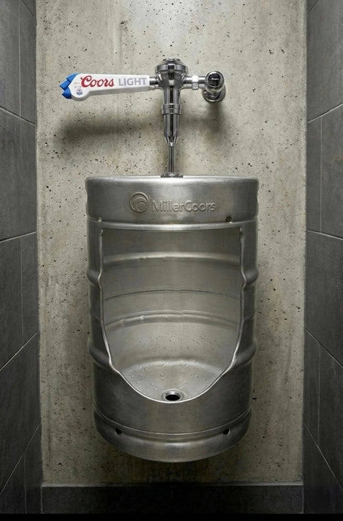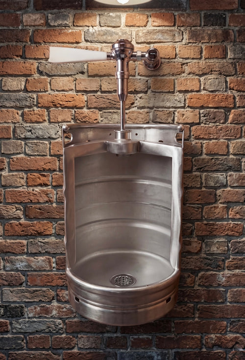 Beer Keg Urinal with Tap Handle – Stainless Steel Wall Mounted Urinal – Man Cave Bar Bathroom Decor
